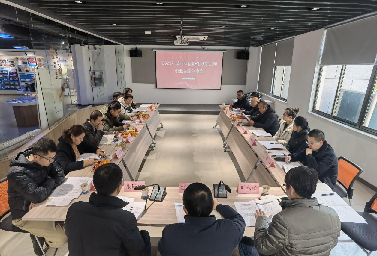 为了更好的了解入园企业需求,给企业提供更好的合作交流平台,促进企业之间沟通交流,2021年12月30日下午,黄山科创孵化器举办2021年第二期创业交流分享会。活动邀请黄山中鼎信息技术有限公司、黄山市鼎鸿汽配有限责任公司2家优秀毕业企业和黄山市皖乡农业科技有限公司、黄山市嘉化有机硅科技有限公司等10家在孵企业负责人参加。活动由黄山科创高新技术创业服务有限公司副总经理朱殿华主持。