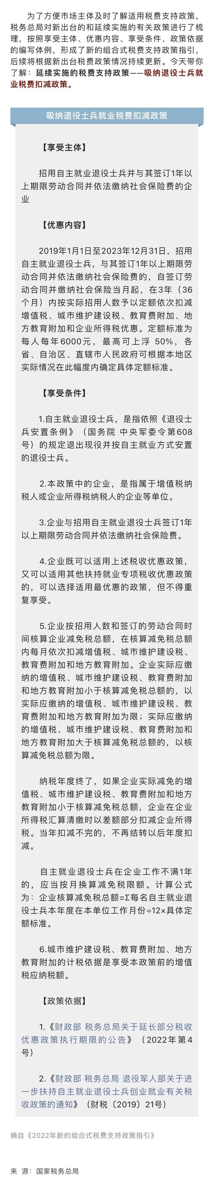 【充电驿站】组合式税费支持政策之延续实施的政策——自主就业退役士兵创业税费扣减