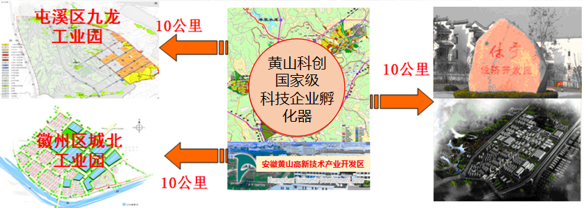 黄山科创孵化器位于黄山高新技术产业开发区梅林大道89号,地处黄山市中心城区(屯溪区)和休宁县、徽州区等区县构成的黄山市南部城镇群中心位置,距中心城区(屯溪区)5公里,至黄山机场、火车站行程10分钟以内。周边工业园区共集聚1000家以上家科技型企业。