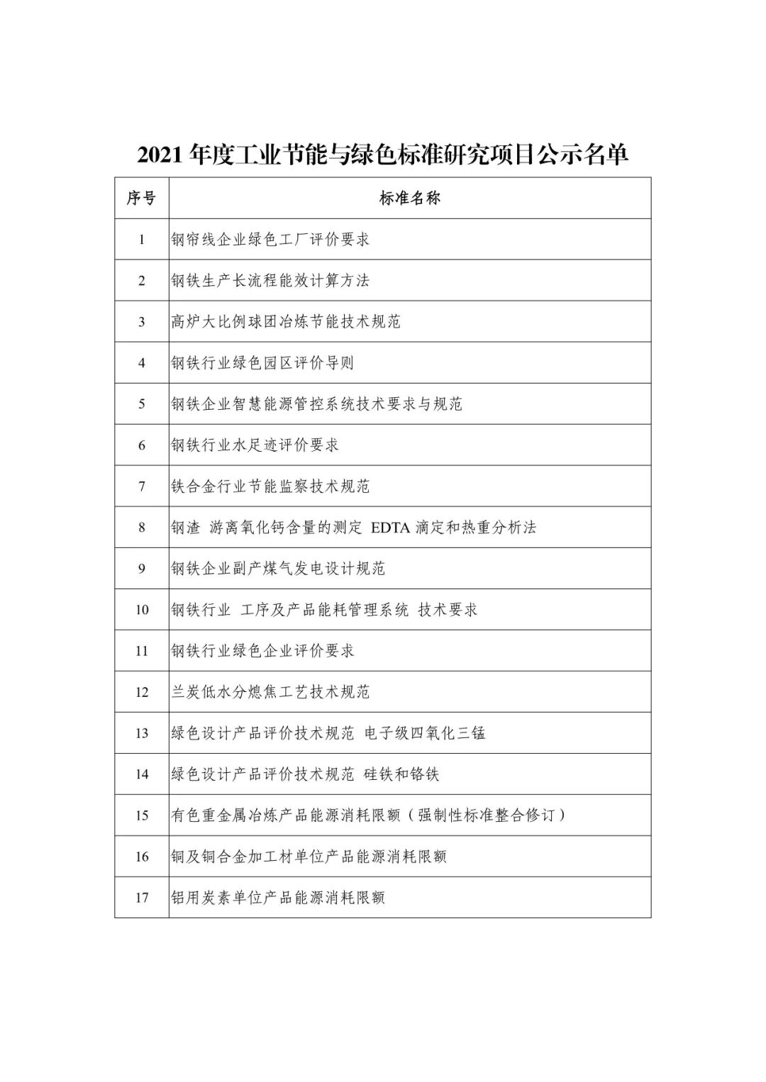 附件:2021年度工业节能与绿色标准研究项目公示名单