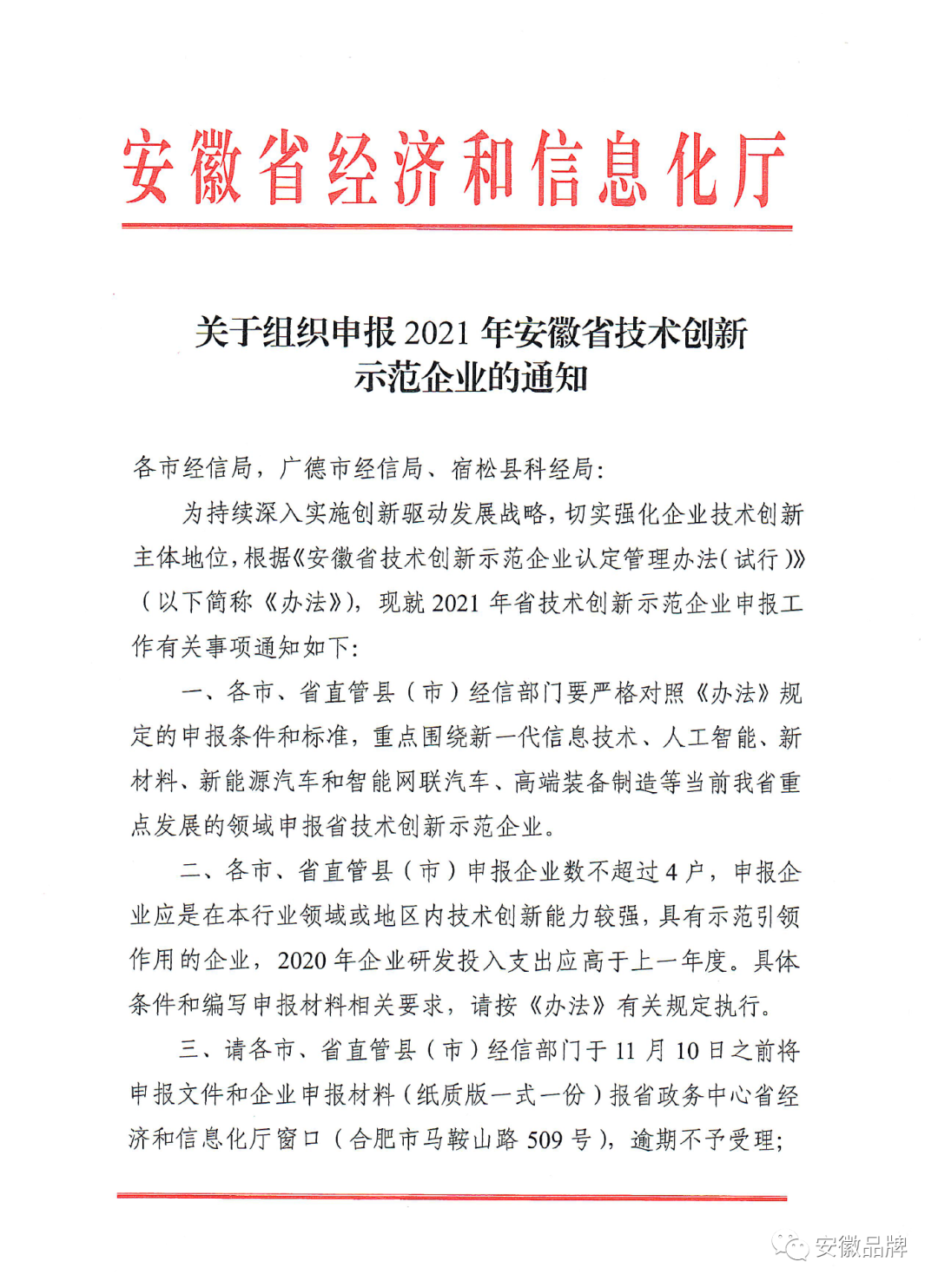 2021年安徽省技术创新示范企业申报开始