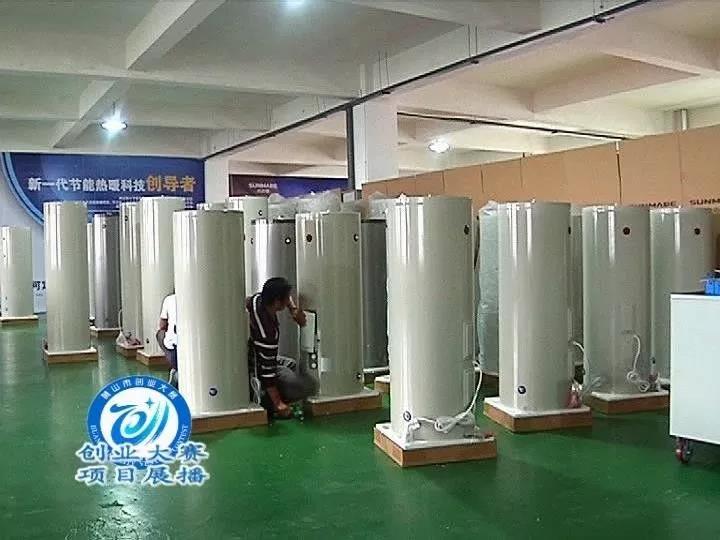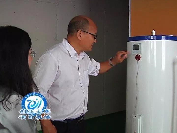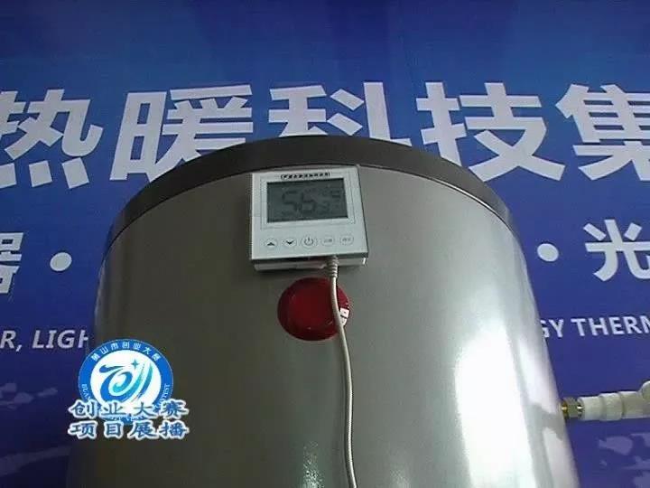 安徽尚迈德节能科技有限公司总经理 朱晓贵:你比如说像我这个产品,我手机上的。我手机上面就可以设定,这个是一个500升的热水器。一打开,我们的设定温度是60度,它现在是57度,他已经停止,在保温。如果我们要求它温度打高,它马上就开始加热。