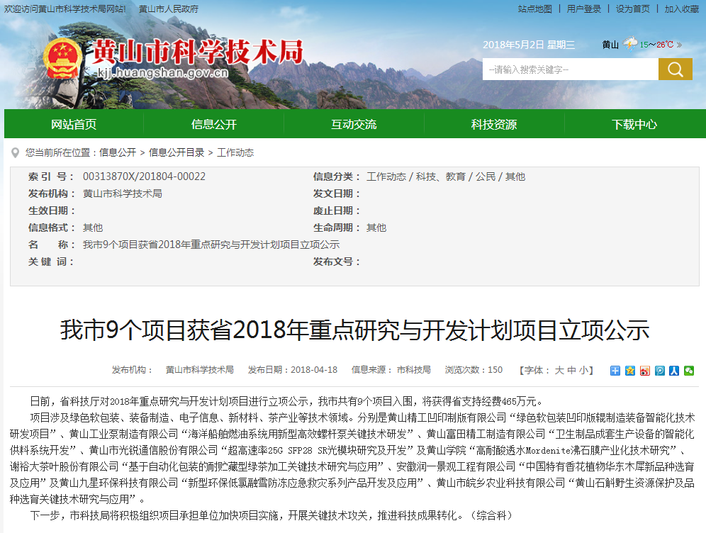 近日,黄山科创孵化器在孵企业黄山市皖乡农业科技有限公司与美国南达科他州立大学合作申报的“黄山石斛野生资源保护及品种选育关键技术研究与应用”列入省对外科技合作项目立项公示,将获省财政60万支持。