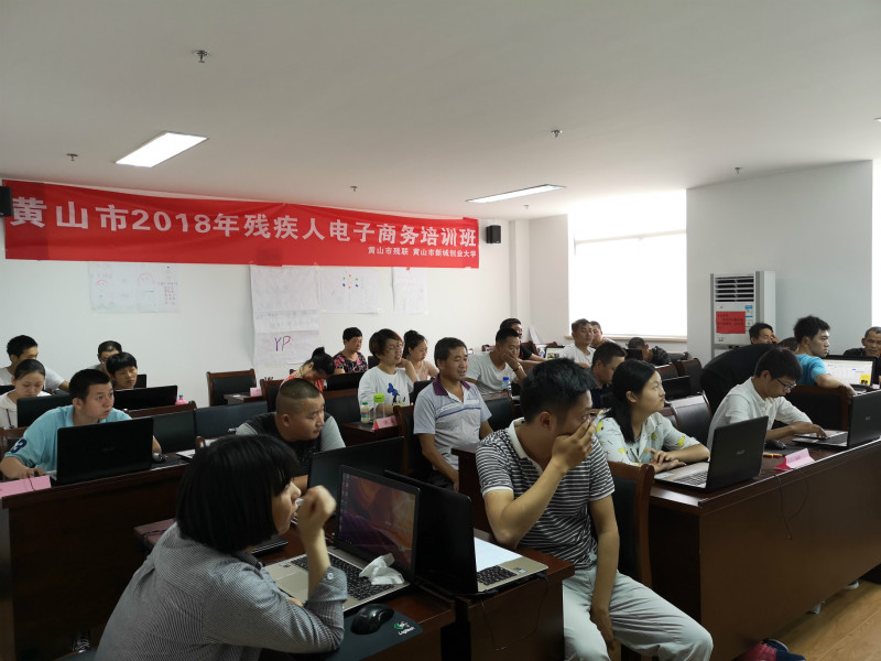 为适应网络电商时代的发展趋势,2018年7月21日,黄山市新城创业大学与黄山市残疾人联合会共同举办的网络创业(电子商务)培训班在黄山市残疾人劳动就业服务中心二楼培训教室开班。30名学员参加本次培训。