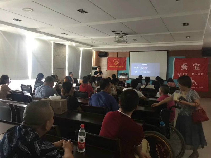 “虽然身体残疾了,但是我不愿意成为家人的累赘,于是就想着如何才能开发一款让残疾人坐在家中就能操作的终端平台,通过手机和电脑,让我们肢残人士没有任何风险地轻松就业。”8月5日,在黄山市新城创业大学(黄山市国家级科技企业孵化器)六楼培训中心,一群残疾人士集聚在一起,黄山“蚕宝”电商平台创始人吴飞正在讲授微商社群营销培训。