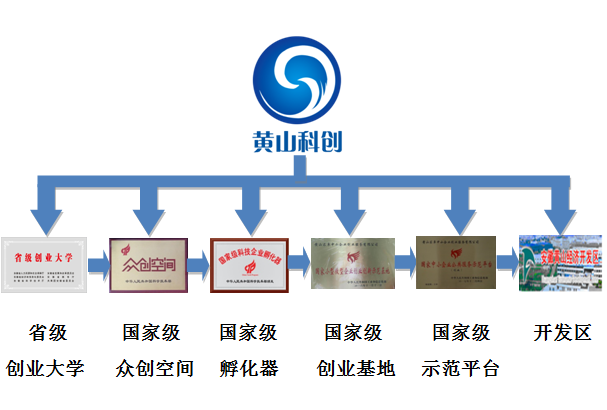 近年来,黄山科创以提升服务功能为核心,不断增强软硬件实力建设,目前以省级创业大学、国家级众创空间、国家级科技企业孵化器、国家级小微企业创业基地、国家中小企业公共服务示范平台为主要服务板块,形成了创业企业从无到有、从小到大全过程较为完善的创业服务链条体系。根据企业的不同创业阶段,提供不同的创业服务,辅导企业快速成长。
