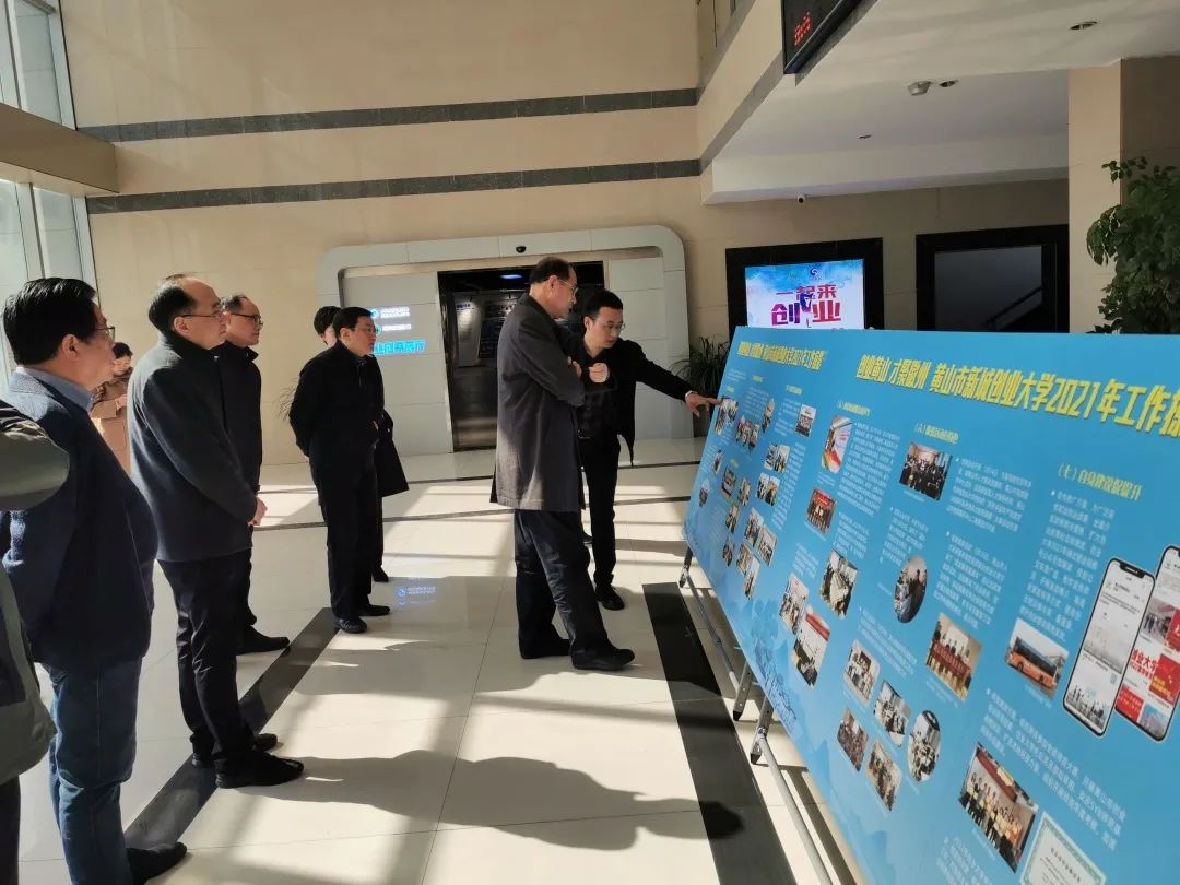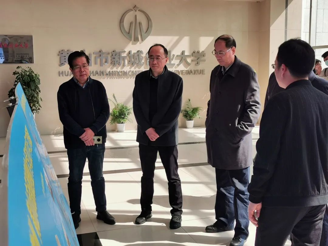 2022年3月9日,安徽省委组织部副部长、省人力资源和社会保障厅党组书记、厅长徐建一行来黄调研就业创业工作,在黄期间莅临黄山市新城创业大学调研创业平台建设情况。市委常委、常务副市长朱策、市委组织部副部长、市人社局党组书记程燕陪同,创业大学理事长唐礼亮、校长江建云接待调研组一行。
