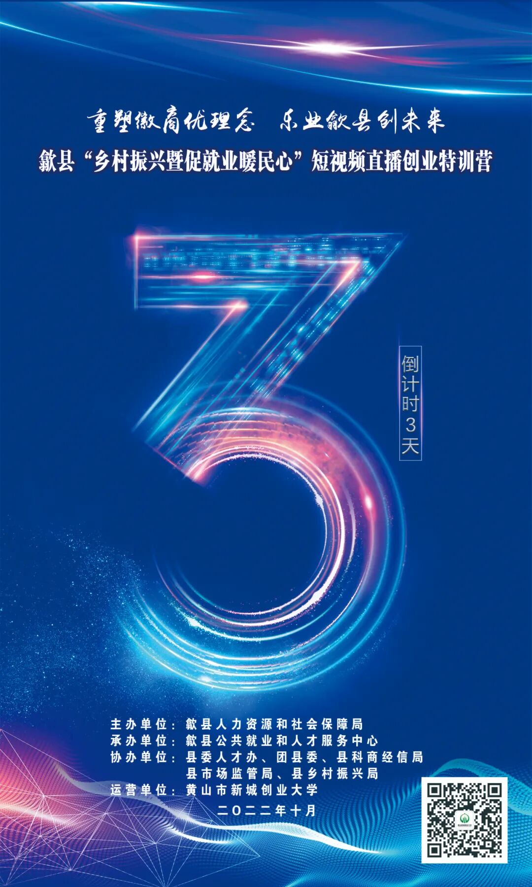 【创业特训】2022年歙县“乡村振兴暨促就业暖民心”短视频直播创业特训营开营倒计时!