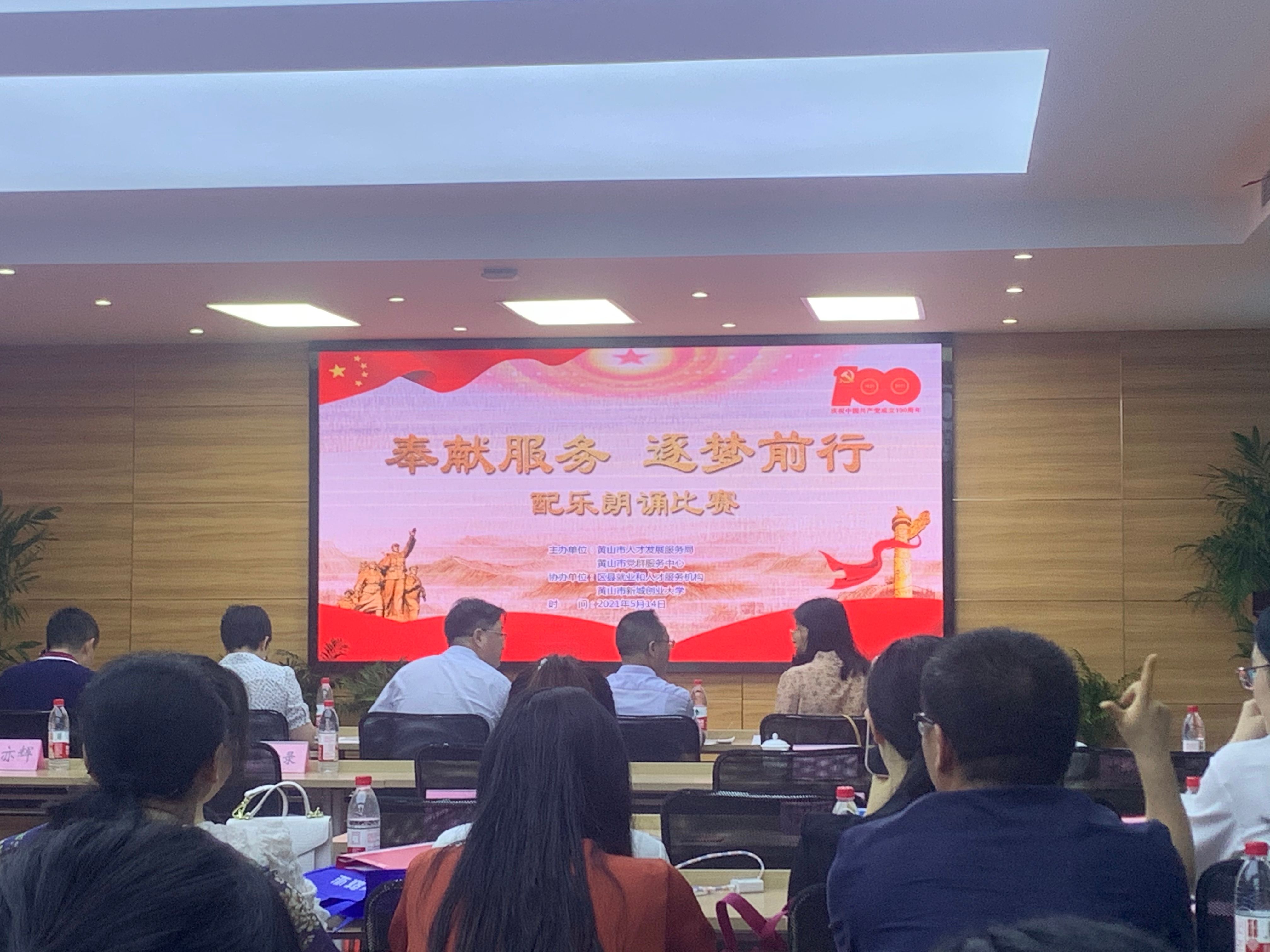 红色的记忆,是永远的丰碑;铿锵的誓言,是心中的颂歌。为喜迎建党百年华诞,由黄山市人才服务发展局、黄山市党群服务中心主办,区县就业和人才服务机构、黄山市新城创业大学协办的“庆祝中国共产党建党100周年系列活动之配乐朗诵”比赛活动于5月14日下午在黄山市党群服务中心二楼报告厅开展。