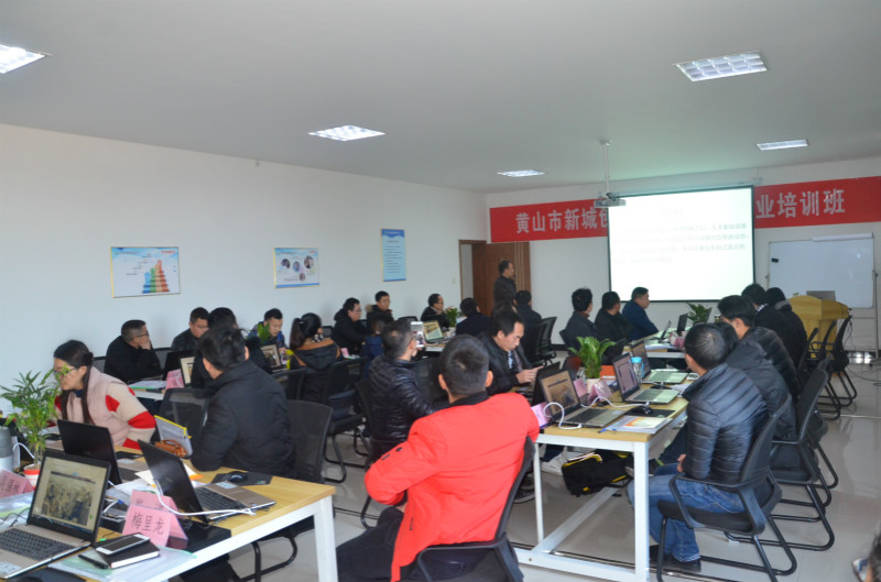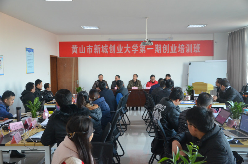 为进一步提升小微企业负责人的创业能力,经过前期的精心筹备安排,2017年12月22日,黄山市新城创业大学首期创业培训班开班仪式在黄山市国家级科技企业孵化器6楼互联网+创业模拟实训室举行。市就业人才局局长姚剑平、副局长毕军、就业促进科科长王志敏、创业大学校长江建云、培训导师孙水平以及首期班30名创业培训学员参加开班仪式。
